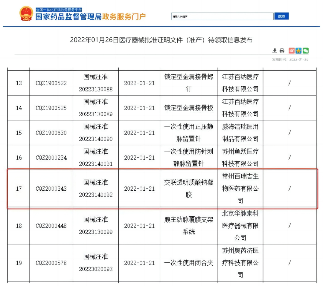 1月26日,常州百瑞吉生物醫(yī)藥有限公司生產(chǎn)的“交聯(lián)透明質(zhì)酸鈉凝膠”獲國家藥監(jiān)局批準(zhǔn)上市,產(chǎn)品用于預(yù)防盆腹腔術(shù)后粘連,奧泰康助力產(chǎn)品獲得市場準(zhǔn)入。