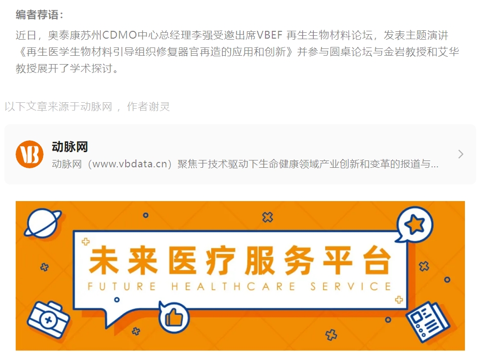 2024年5月7日至10日,第八屆未來醫(yī)療生態(tài)展會(huì)以“新青年”為主題,由VB100、動(dòng)脈網(wǎng)、蛋殼研究院、動(dòng)脈橙主辦,天津經(jīng)濟(jì)技術(shù)開發(fā)區(qū)(TEDA)聯(lián)合主辦,與天津?yàn)I海中關(guān)村科技園管委會(huì)、北塘灣數(shù)字經(jīng)濟(jì)產(chǎn)業(yè)園戰(zhàn)略合作,于北京·北人亦創(chuàng)國際會(huì)展中心正式召開。作為此次論壇備受關(guān)注的熱門論壇之一,生物再生材料論壇于5月10日下午圓滿落幕。
