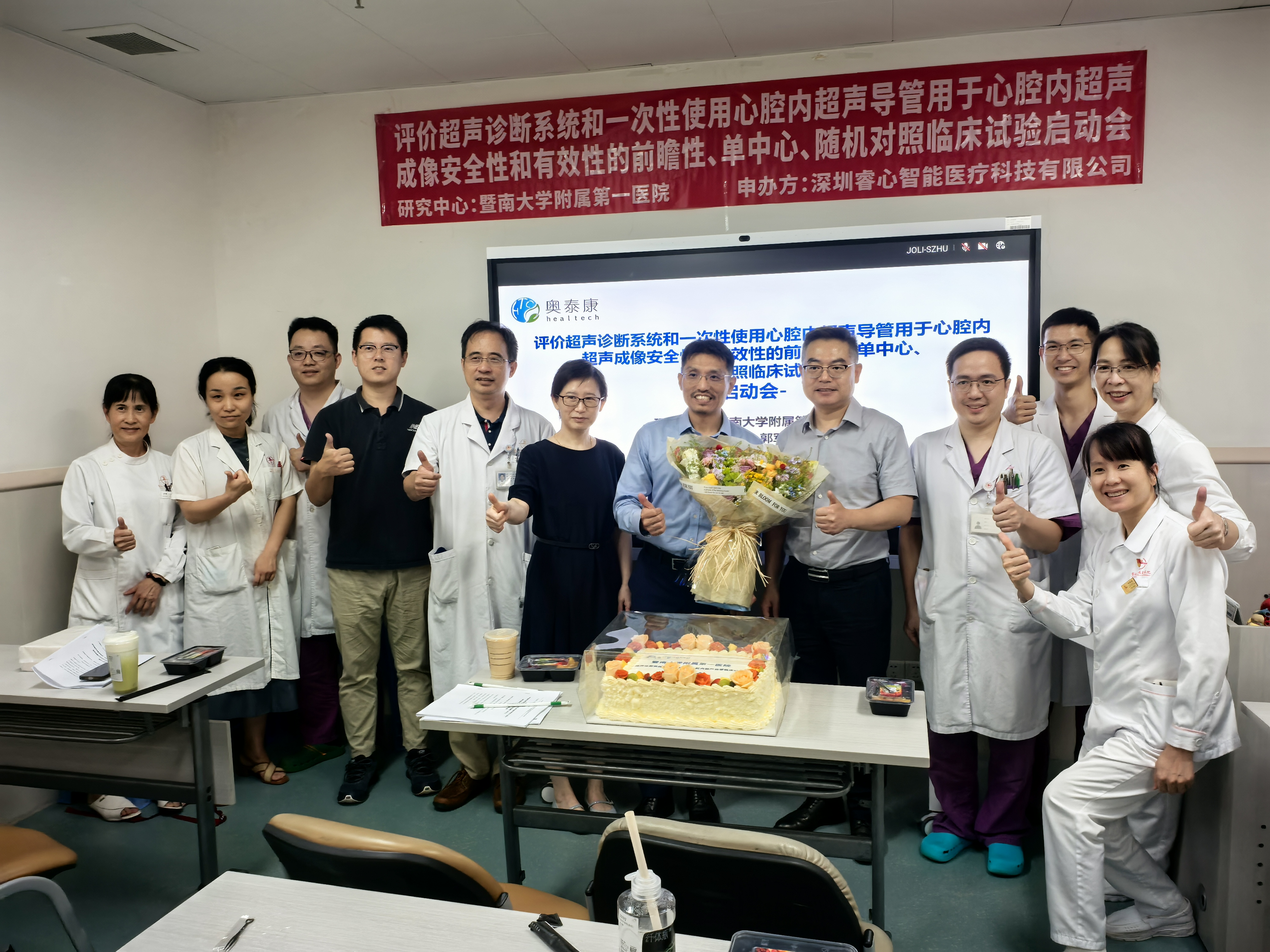 該臨床研究項(xiàng)目由暨南大學(xué)附屬第一醫(yī)院心內(nèi)科郭軍教授作為主要研究者,他在啟動會上表示:“心腔內(nèi)超聲心動圖(intracardiac echocardiography,ICE)具有實(shí)時成像、實(shí)時監(jiān)測術(shù)中并發(fā)癥以及良好的耐受性等優(yōu)點(diǎn),近年來越來越多地應(yīng)用于多種類型的心臟介入操作。睿心醫(yī)療心腔內(nèi)超聲診斷系統(tǒng)和ICE導(dǎo)管,可以全程可視、精確顯示局部解剖結(jié)構(gòu)和心臟血流、血流速度等特點(diǎn),很好地契合了臨床需求。希望睿心醫(yī)療心腔內(nèi)超聲診斷系統(tǒng)和一次性使用心腔內(nèi)超聲導(dǎo)管臨床試驗(yàn)順利完成,早日在臨床使用,爭取把產(chǎn)品盡早推廣到全國乃至全世界。”