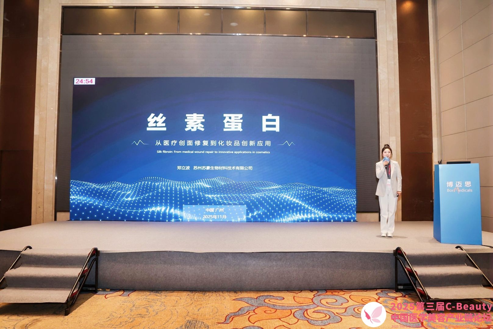 鄭立波女士圍繞絲素蛋白的天然優(yōu)勢、技術(shù)突破與美妝市場前景進(jìn)行了深度分享。