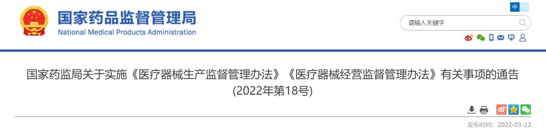 自2022年5月1日起,《食品藥品監(jiān)管總局關(guān)于實施〈醫(yī)療器械生產(chǎn)監(jiān)督管理辦法〉和〈醫(yī)療器械經(jīng)營監(jiān)督管理辦法〉有關(guān)事項的通知》(食藥監(jiān)械監(jiān)〔2014〕143號)予以廢止。