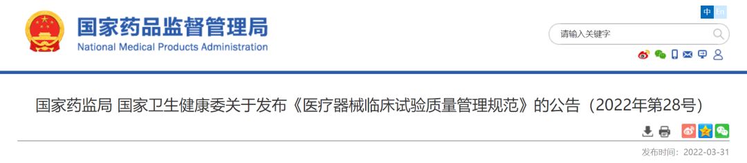 為深化醫(yī)療器械審評(píng)審批制度改革,加強(qiáng)醫(yī)療器械臨床試驗(yàn)管理,根據(jù)《醫(yī)療器械監(jiān)督管理?xiàng)l例》(國(guó)務(wù)院令第739號(hào))及《醫(yī)療器械注冊(cè)與備案管理辦法》(市場(chǎng)監(jiān)管總局令第47號(hào))、《體外診斷試劑注冊(cè)與備案管理辦法》(市場(chǎng)監(jiān)管總局令第48號(hào)),國(guó)家藥品監(jiān)督管理局會(huì)同國(guó)家衛(wèi)生健康委員會(huì)組織修訂了《醫(yī)療器械臨床試驗(yàn)質(zhì)量管理規(guī)范》,現(xiàn)予發(fā)布,自2022年5月1日起施行。