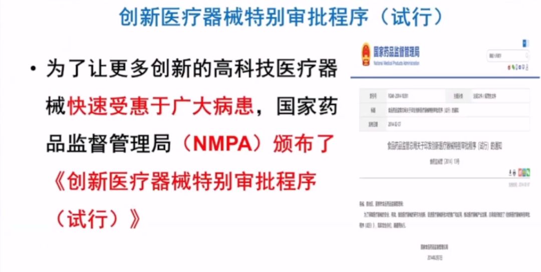 2014年2月7日,為保障醫(yī)療器械的安全有效,鼓勵醫(yī)療器械的研究與創(chuàng)新,促進醫(yī)療器械新技術(shù)的推廣應(yīng)用,推動醫(yī)療器械產(chǎn)業(yè)發(fā)展,國家藥監(jiān)局制定了《創(chuàng)新醫(yī)療器械特別審批程序(試行)》,政策從創(chuàng)新產(chǎn)品定義、提交資料、證明性文件、等方面規(guī)定了創(chuàng)新器械審批流程和要點。