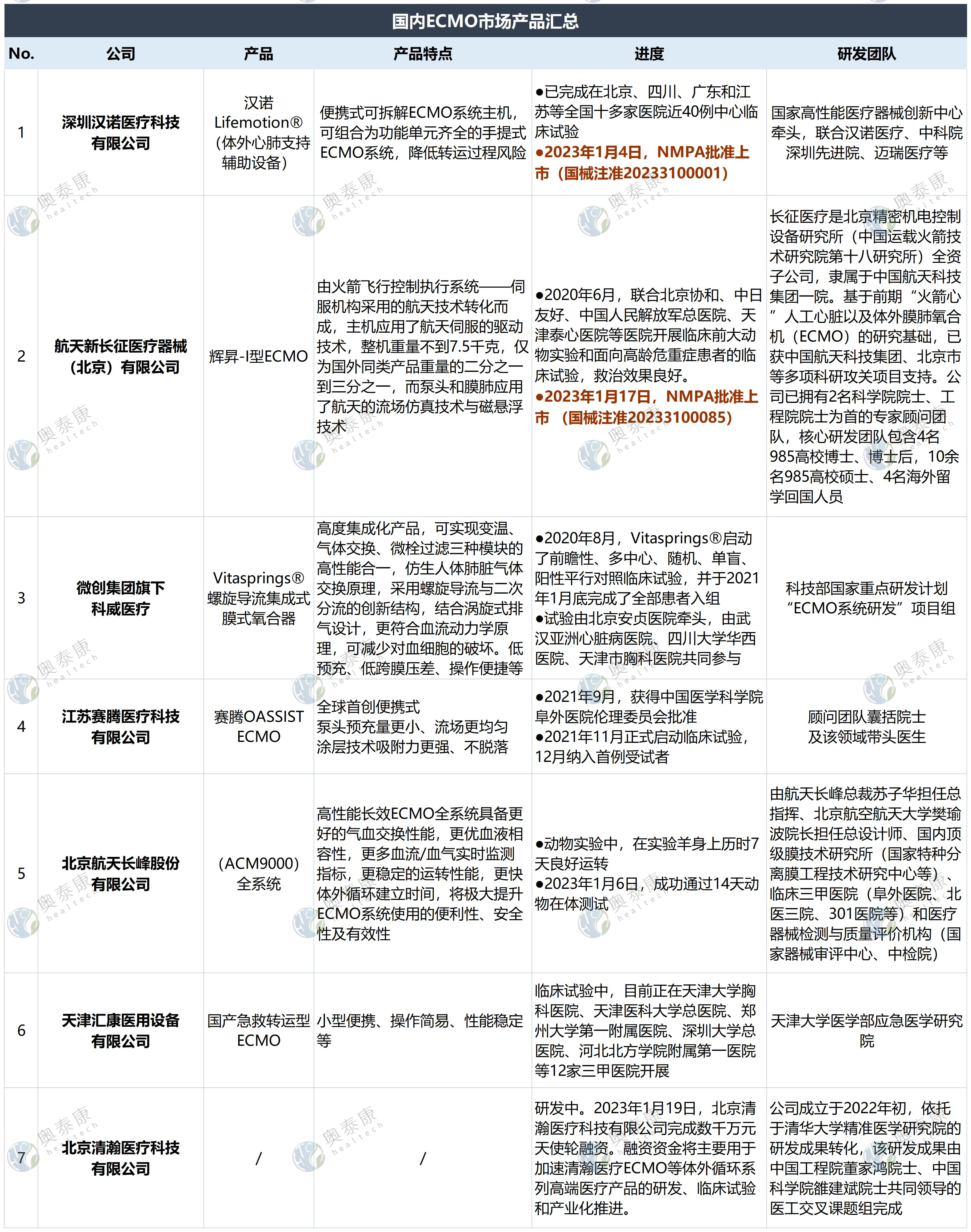“2023年1月,國家藥監(jiān)局應急批準漢諾醫(yī)療(1.4日)和長征醫(yī)療(1.17日)的ECMO產(chǎn)品(體外肺/心肺支持輔助設備)上市,系國內首款和第二款獲批的國產(chǎn)ECMO設備,填補了國內空白。”