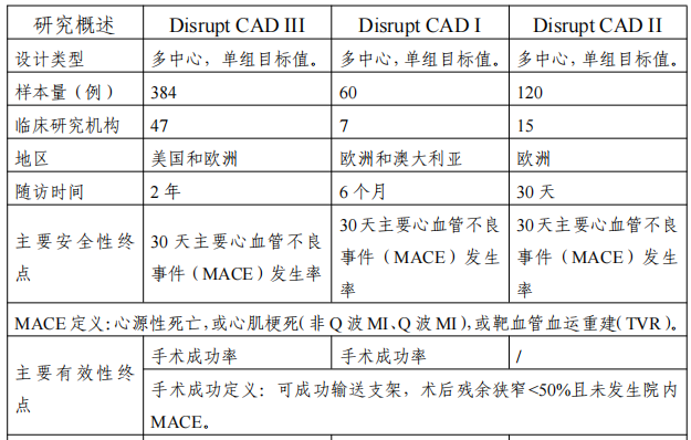 *Disrupt CAD I 為上市前臨床試驗(yàn)