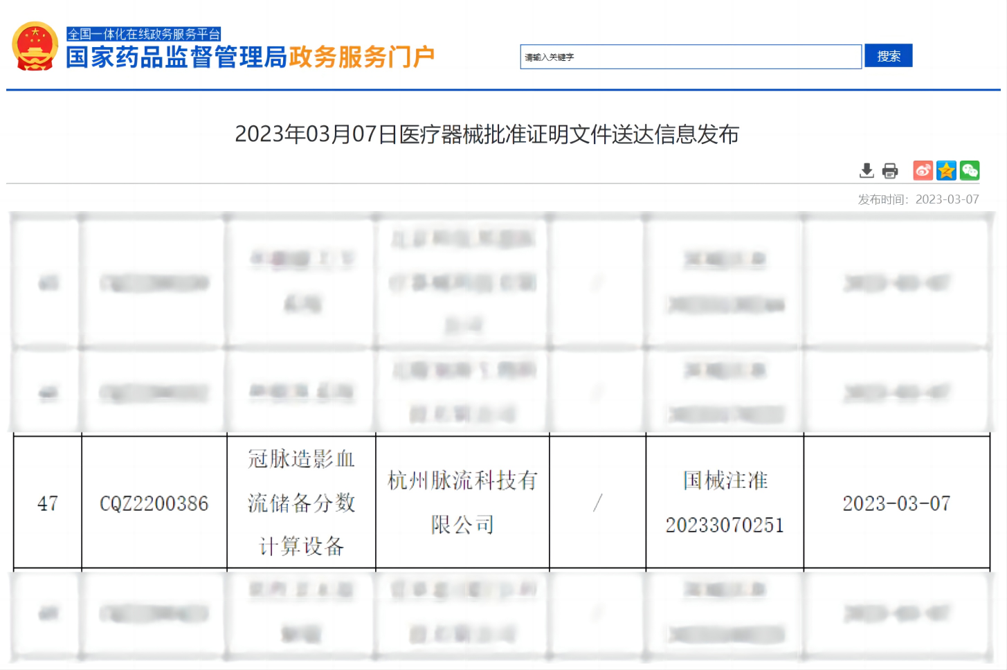 冠脈造影血流儲(chǔ)備分?jǐn)?shù)計(jì)算設(shè)備獲證,2023年第五張三類醫(yī)療器械注冊(cè)證??MA成果發(fā)布