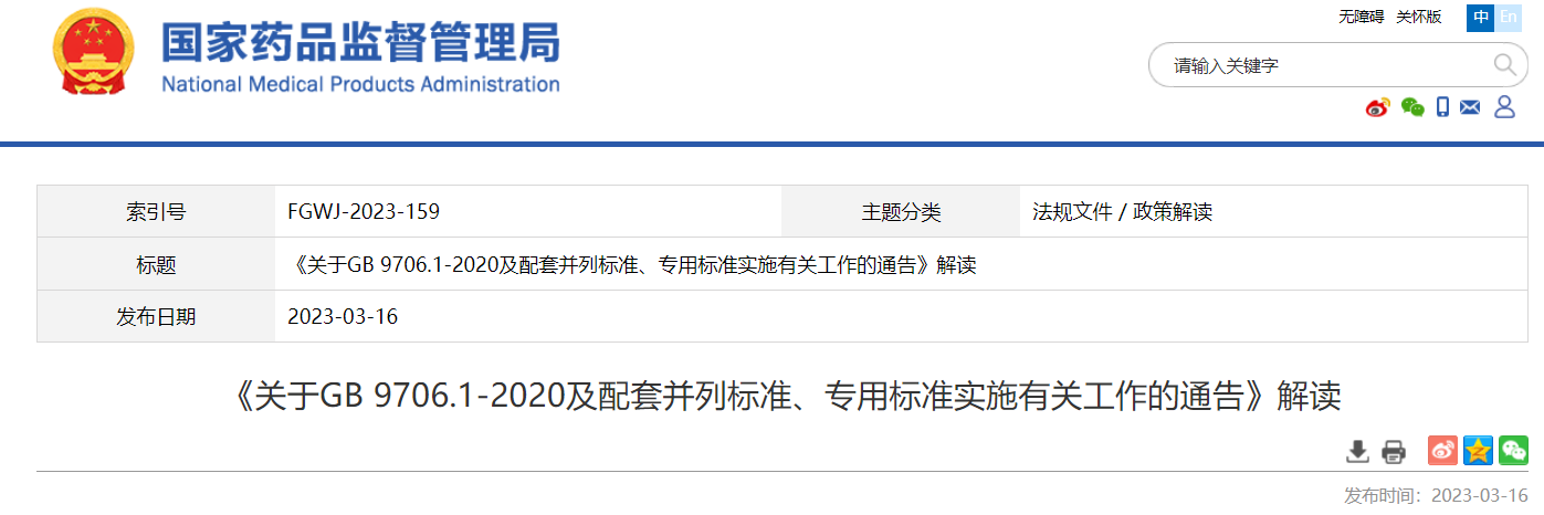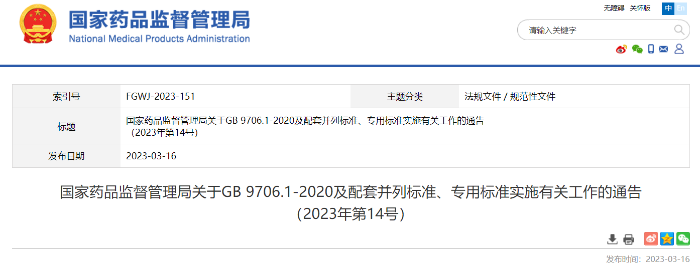 關(guān)于GB 9706.1-2020及配套并列標(biāo)準(zhǔn)、專(zhuān)用標(biāo)準(zhǔn)實(shí)施有關(guān)工作的通告(2023年第14號(hào))及解讀