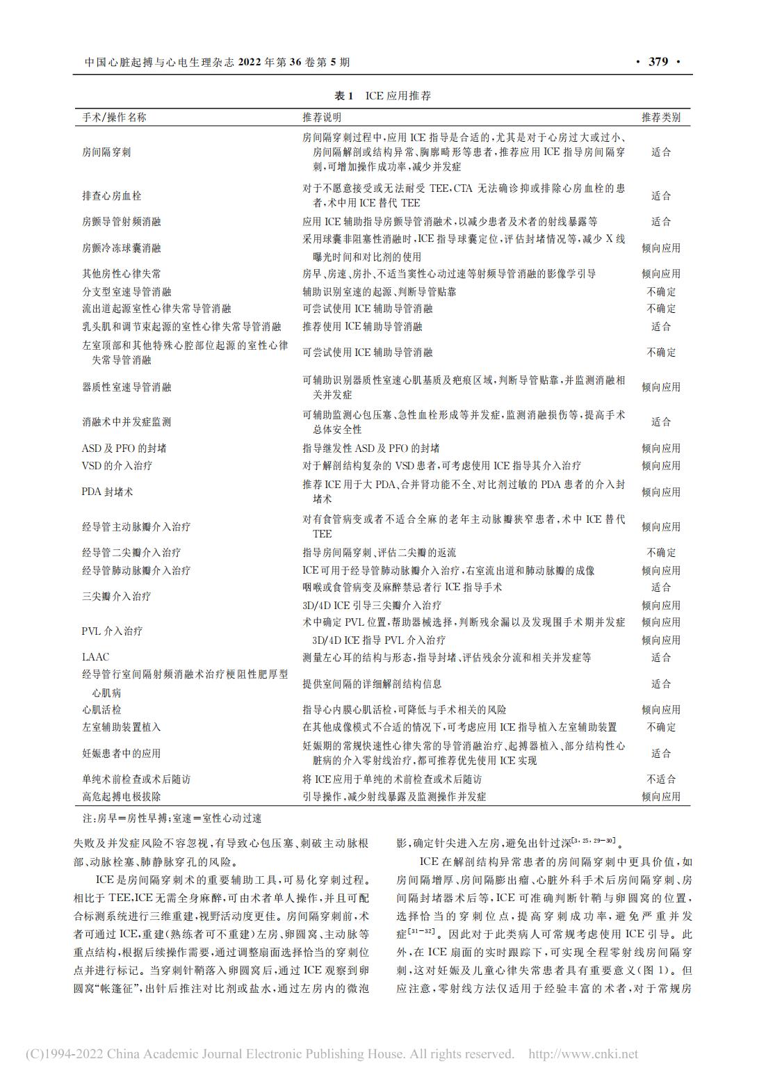 共識(shí)指出,ICE最初主要用于指導(dǎo)房間隔缺損(ASD)和卵圓孔未閉(PFO)的介入封堵,其成像效果與經(jīng)食管超聲心動(dòng)圖(TEE)相當(dāng),ICE可對(duì)房間隔進(jìn)行成像,明確卵圓窩的位置和解剖結(jié)構(gòu),輔助術(shù)者選擇理想穿刺位置,提高房間隔穿刺的成功率和安全性,現(xiàn)已應(yīng)用于多種需要房間隔穿刺的介入手術(shù),如心房顫動(dòng)射頻導(dǎo)管消融術(shù)、二尖瓣介入治療手術(shù)、左心耳封堵術(shù)(LAAC)等。并且,ICE可顯示食管、動(dòng)脈和心耳等結(jié)構(gòu),從而有望避免相關(guān)并發(fā)癥的發(fā)生,增加術(shù)者信心,減少學(xué)習(xí)曲線,減少并發(fā)癥,增加成功率。
