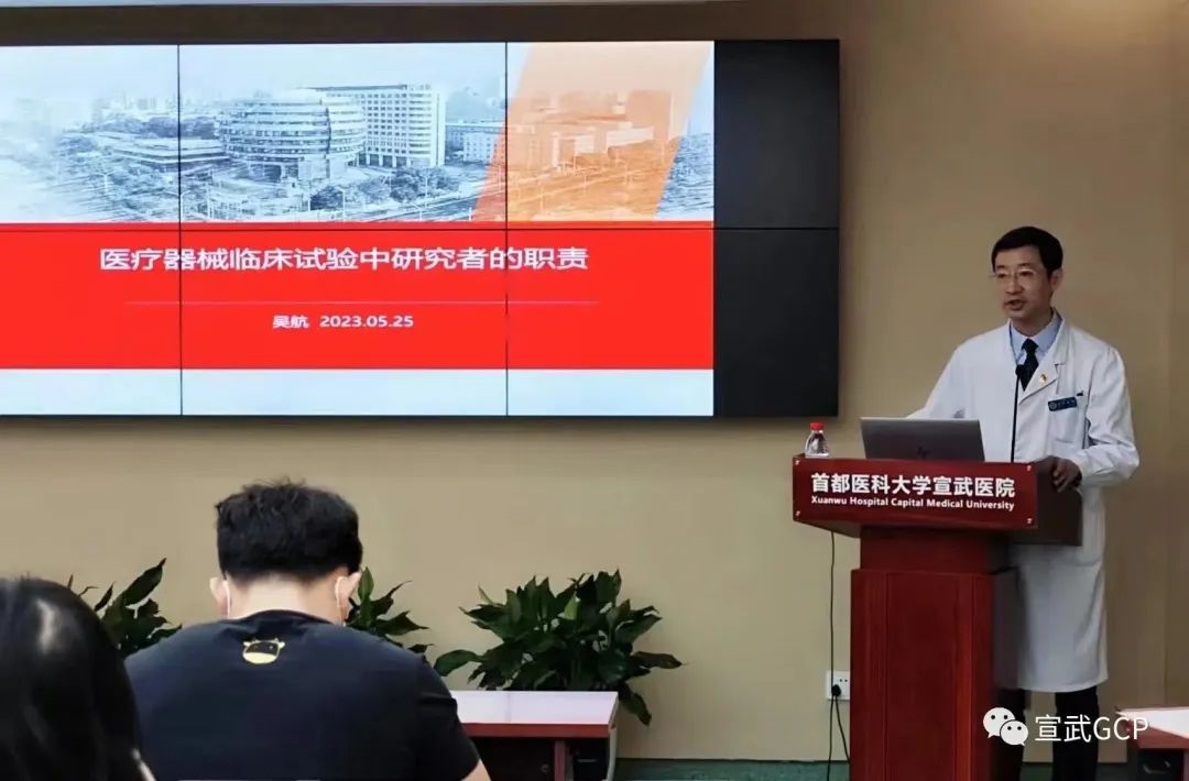 首先由醫(yī)學(xué)工程處處長吳航講解“醫(yī)療器械臨床試驗(yàn)中研究者的職責(zé)”。從2022版《醫(yī)療器械臨床試驗(yàn)質(zhì)量管理規(guī)范》中研究者、主要研究者及協(xié)調(diào)研究者的定義,到相關(guān)法規(guī)中主要研究者及研究者需要具備的條件,吳航處長結(jié)合法規(guī)給出了我院對于研究者及主要研究者的要求,并對2022版《醫(yī)療器械臨床試驗(yàn)質(zhì)量管理規(guī)范》中研究者的職責(zé)進(jìn)行了詳細(xì)解讀。
