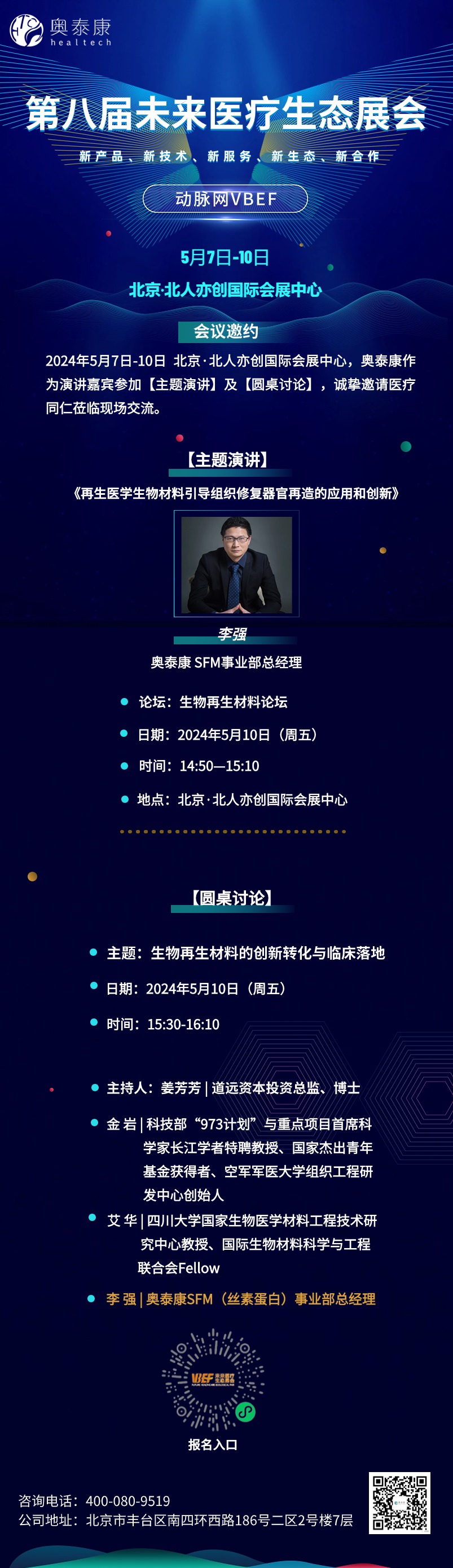 ??動脈網(wǎng)·VBEF——第八屆未來醫(yī)療生態(tài)展會,奧泰康·再生醫(yī)學(xué)生物材料演講???5月10日,與您相約??北京·北人亦創(chuàng)國際會展中心