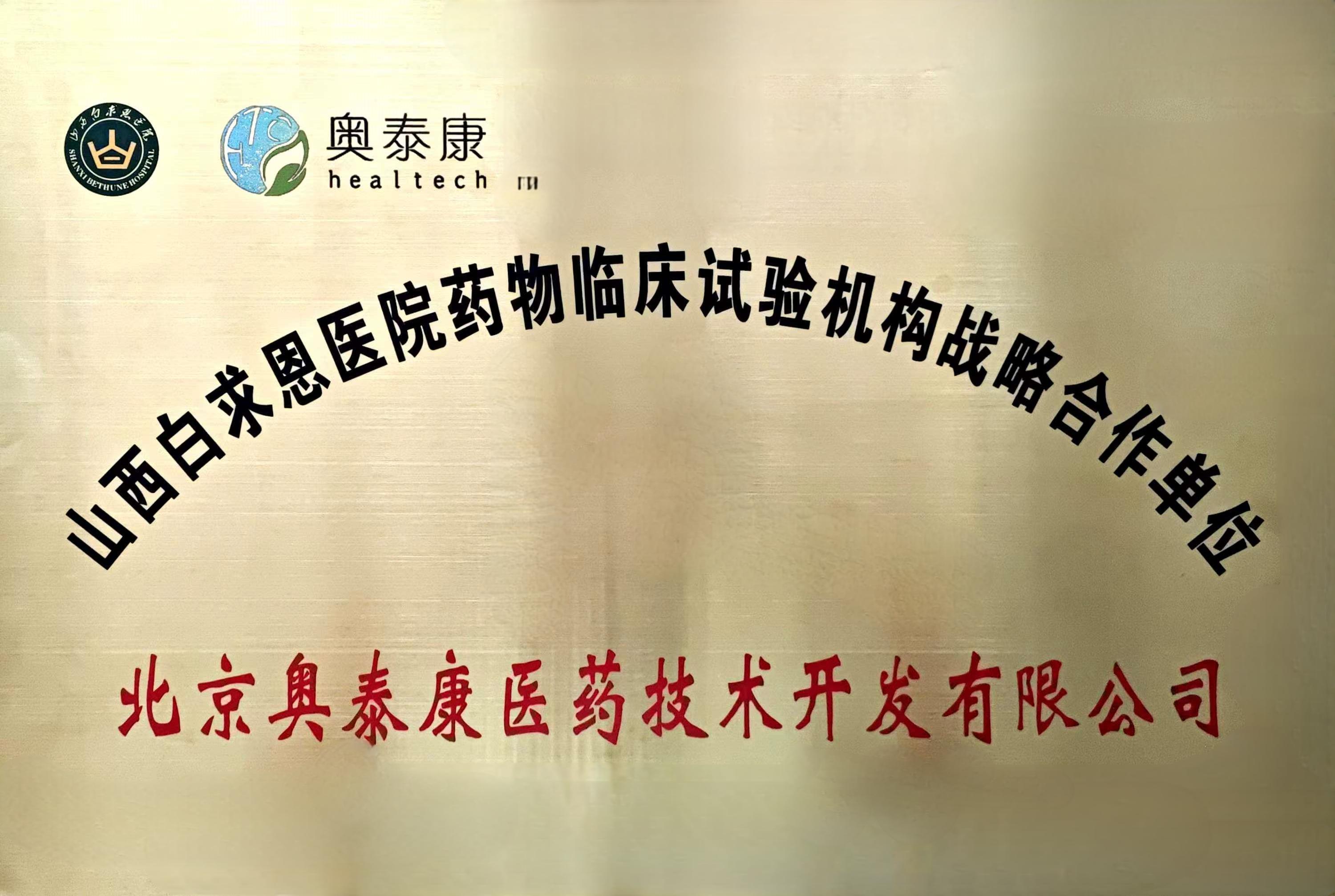 山西白求恩醫(yī)院在山西省委省政府的高位推動下,作為國家區(qū)域醫(yī)療中心進行重點建設(shè)。其藥物臨床試驗機構(gòu)是山西省藥理學會藥物臨床試驗主委單位,承擔著提高山西省藥物臨床試驗整體研究水平、保障省內(nèi)藥物臨床試驗項目質(zhì)量管理規(guī)范化的重務(wù)。此次奧泰康獲得山西白求恩醫(yī)院“戰(zhàn)略合作單位”的授牌,標志著雙方的合作關(guān)系再上一個臺階,雙方將進一步展開多維度的深入合作,共同推動中國臨床研究事業(yè)的發(fā)展。