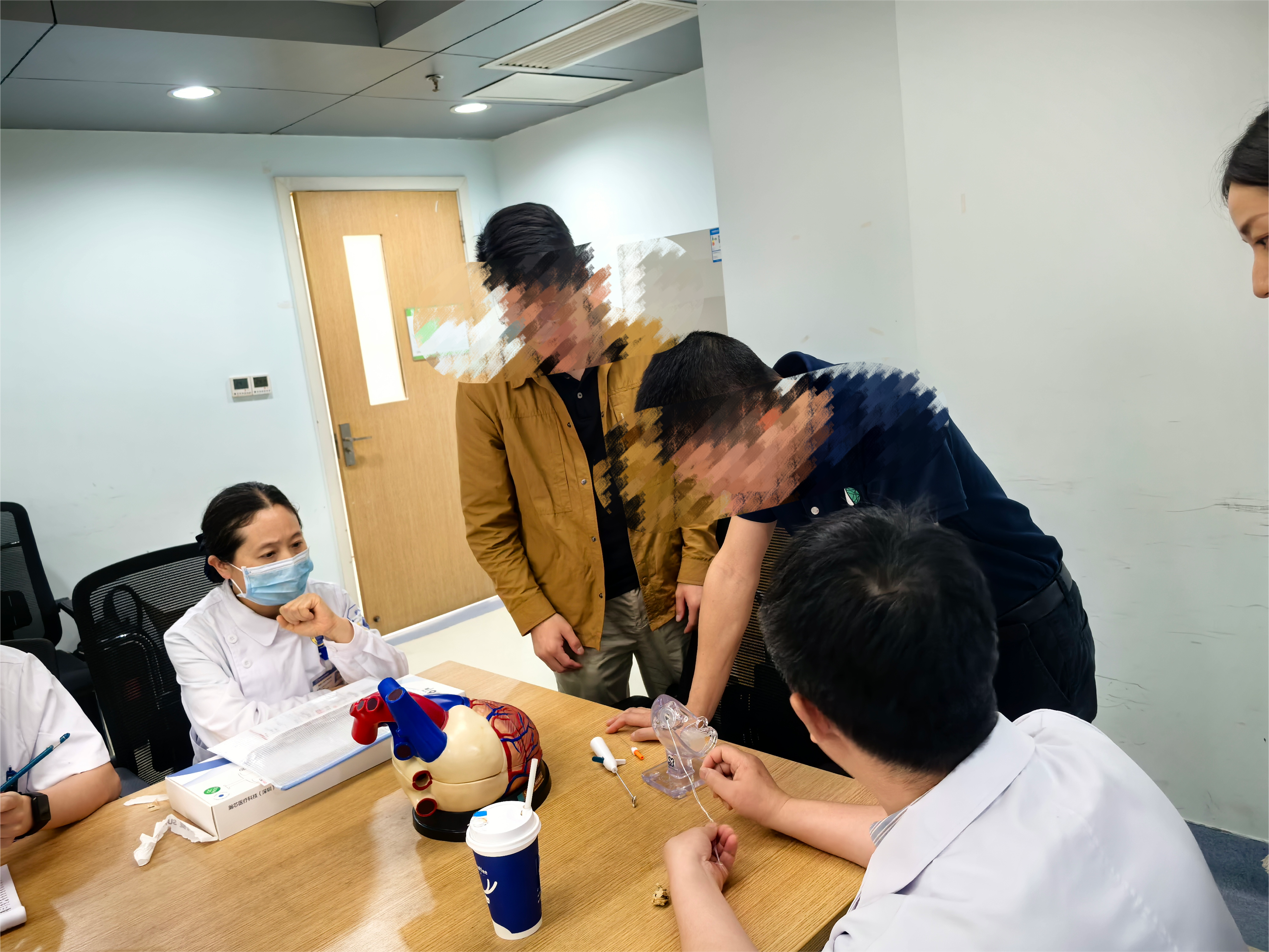 四川臨床試驗(yàn)研究基地,介入二尖瓣腱索修復(fù)系統(tǒng)臨床項(xiàng)目,研發(fā)廠家、研究者及CRO團(tuán)隊(duì)人員,在一同進(jìn)行試驗(yàn)器械的學(xué)習(xí)探討,對(duì)于產(chǎn)品的熟悉程度決定了臨床醫(yī)生能否更好的將器械應(yīng)用于臨床手術(shù),為后期器械的優(yōu)化升級(jí)奠定了堅(jiān)實(shí)的基礎(chǔ)。每一次器械的精準(zhǔn)植入,背后是無(wú)數(shù)次的模擬演練與跨團(tuán)隊(duì)協(xié)作。