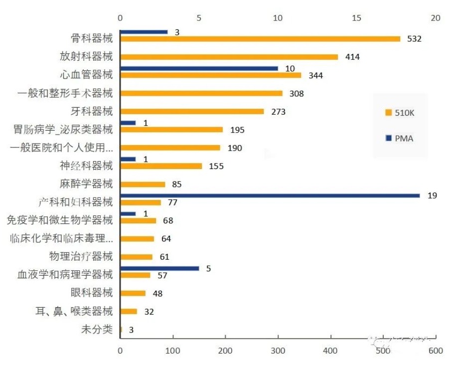 截止2021年1月4日,2020年美國FDA共批準(zhǔn)2906個510(k)途徑的產(chǎn)品—心血管類產(chǎn)品數(shù)量名列前茅。